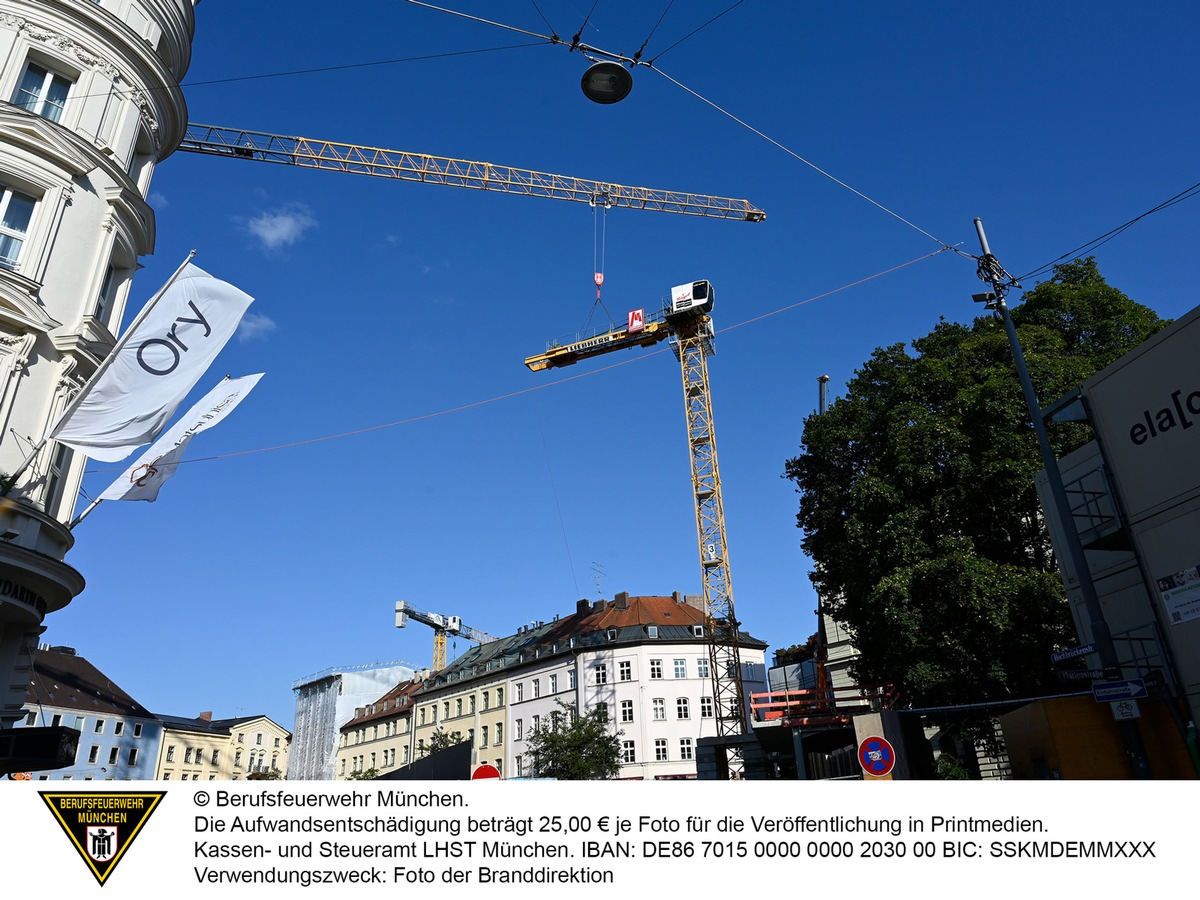 19.09.2024 - 07:45:14 | presseportal.deAm Mittwoch hat die Feuerwehr München zwei Baukräne gesichert. Bei beiden Kränen war die Standsicherheit nicht mehr gegeben und sie mussten abgebaut werden.