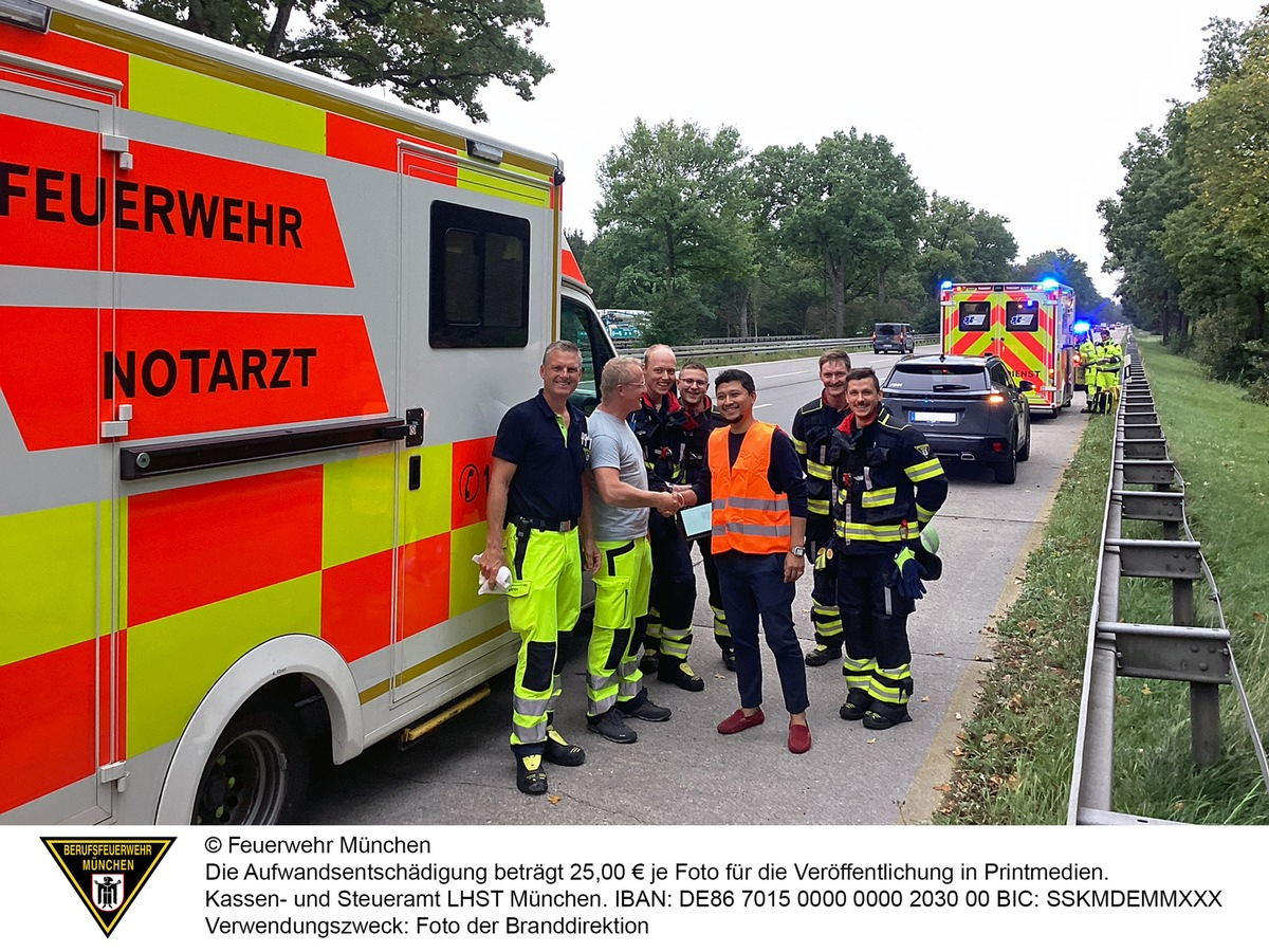 Der ebenfalls hinzugezogene Kindernotarzt und der Neugeborenennotarztdienst übernahmen die Versorgung des Kindes, im Rettungswagen wurde die Mutter von einem Notarztteam versorgt. Die Einsatzstelle wurde während der Versorgung durch ein Hilfeleistungslöschfahrzeug der Feuerwehr München abgesichert. Gemeinsam fuhren im Anschluss alle Fahrzeuge in die ursprünglich vorgesehene Klinik.