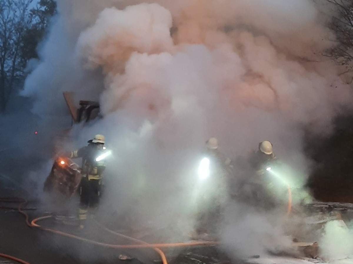 Ein Sachschaden an der Müllpresse kann von der Feuerwehr nicht beziffert werden. Die Klärung der Brandursache ermittelt die Polizei.