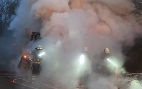 Eine Müllpresse mit Sperrmüll ist am frühen Mittwochmorgen in Flammen gestanden. Der Inhalt musste von den Einsatzkräften ausgeräumt werden.