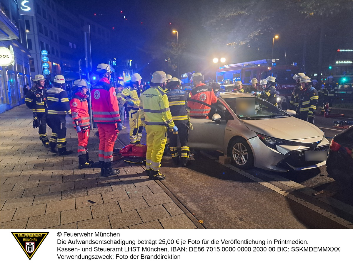 Am Mittwochabend ist es zu einem Zusammenstoß zweier Fahrzeuge im Zentrum Münchens gekommen. Hierbei wurde eine Person schwer verletzt.