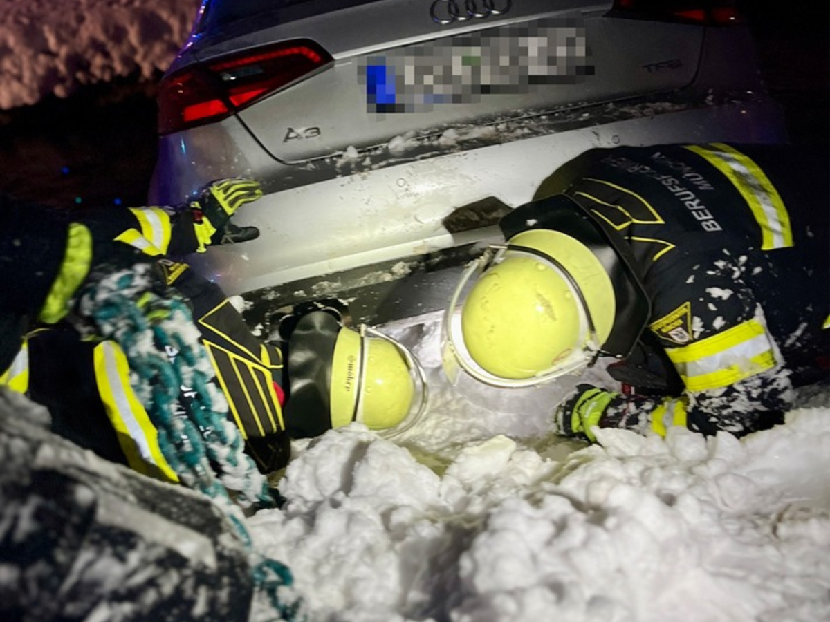 Im Auslauf des Olympiasees, dem sogenannten Nymphenburg-Biederstein-Kanal, fanden die Einsatzkräfte den mit der Motorhaube ins Bachbett gekippten Wagen. Der Mann saß hinter dem Steuer und konnte das Fahrzeug nicht mehr eigenständig verlassen. Die Einsatzkräfte der Feuerwehr sicherten das Fahrzeug mit einem Greifzug gegen weiteres Abrutschen und verlegten Steckleitern neben dem Pkw. So konnten sich die Feuerwehrleute Zugang zum Fahrzeug verschaffen. Anschließend konnten Sie die Fahrertüre öffnen und den Fahrer aus seinem Wagen helfen. Er wurde nach oben gebracht und dort vom anwesenden Rettungsdienst in Obhut genommen. Glücklicherweise blieb der Mann unverletzt und musste nicht transportiert werden.