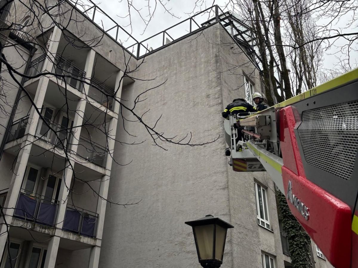 Aufgrund der Fassadenkonstruktion konnte das Tier das Dach nicht mehr aus eigener Kraft verlassen. Mehrere Flugversuche scheiterten. Eine Anruferin informierte schließlich die Integrierte Leitstelle München über die missliche Lage des Wasservogels.