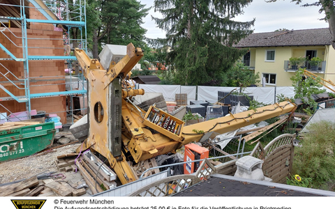 Zu einem umgestürzten Baukran sind Einsatzkräfte der Feuerwehr München am Freitag alarmiert worden. Der Kran war auf eine angrenzende Straße gestürzt und hatte auch ein Wohngebäude beschädigt. Verletzt wurde niemand. Die Einsatzkräfte entfernten auf die Straße ragende Teile des Krans mit einem Schneidbrenner und dem Kran des Wechselladerfahrzeugs. Zur Beweissicherung für die Polizei kam das Drohnenteam der Feuerwehr München zum Einsatz. Warum der Kran umgestürzt ist, ist der Feuerwehr nicht bekannt. Auch zur Höhe des entstandenen Sachschadens liegen uns zum jetzigen Zeitpunkt keine Informationen vor.
