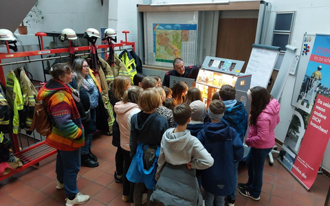 Anschließend lernten sie noch die Arbeit und Ausrüstung der Feuerwehr im theoretischen Unterricht kennen.