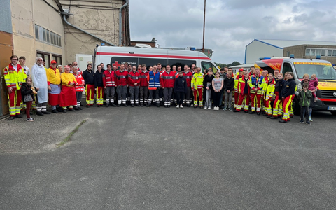 Mönchengladbach, 25.05.2024 - Die ehrenamtlichen Helferinnen und Helfer der Hilfsorganisationen Arbeiter-Samariter-Bund (ASB) und Deutsches Rotes Kreuz (DRK) trainierten am Samstag, 25. Mai 2024, in Zusammenarbeit mit der Feuerwehr Mönchengladbach und der Notfallseelsorge den Aufbau einer Betreuungsplatz- Bereitschaft 500 NRW. Die Betreuungsplatz-Bereitschaft 500 NRW (BTP-B 500 NRW) ist eine kombinierte Katastrophenschutzeinheit in Verbandsstärke des Landeskonzeptes "Sanitätsdienst und Betreuungsdienst". Sie besteht aus zwei Einsatzeinheiten NRW (EE NRW) mit jeweils 33 Einsatzkräften und einer Führungsstaffel. Mit diesem Konzept können 500 Betroffene in einer geeigneten, vorgeplanten, baulichen Anlage, wie einer Schule oder Mehrzweckhalle oder in anderen Bereichen, betreut und verpflegt werden. Im Einsatzgebiet kann die Betreuungsplatz-Bereitschaft Betroffene und die eigenen Kräfte in den ersten 24 Stunden autark mit Verpflegung und allen sonstigen Verbrauchsgütern des täglichen Bedarfs versorgen. Der Einsatz dieses Katastrophenschutzkonzeptes kann sowohl im Rahmen einer vorgeplanten Bereitstellung bei Großereignissen als auch bei Unglücksfällen oder anderen Schadenslagen spontan erfolgen. Die Feuerwehr Mönchengladbach hat gemeinsam mit dem DRK im Stadtgebiet bis zu sechs Standorte als Notunterkünfte vorgeplant und teils bereits umfangreich mit Material ausgestattet. Diese können bei Notwendigkeit einer größeren Evakuierung mit Hilfe je einer Betreuungsplatz-Bereitschaft 500 weiter eingerichtet und betrieben werden. Die Federführung für das Landeskonzept BTP-B 500 übernimmt in Mönchengladbach das DRK mit einer Führungsstaffel und seinem Einsatzleitwagen. Der Bereich Logistik wird durch die Einsatzeinheit 01 (ASB) und der Abschnitt Betreuung durch die Einsatzeinheit 02 (DRK) verantwortet. Dieses Mal erfolgte ein Testbetrieb des Konzeptes auf einem Übungsgelände an der Trabrennbahn. Die Anfahrt erfolgte in einer Kolonne als geschlossener Verband mit allen Fahrzeugen. Übungsschwerpunkt waren die Sicherstellung der medizinischen Versorgung mit Patientenablagen, die Registrierung und Betreuung von Betroffenen und die Einrichtung eines Betreuungsbereiches sowie die Zubereitung von Warmverpflegung für die Betroffenendarsteller*innen von Jugendrotkreuz und ASB-Jugend mit dem Verpflegungsmodul des ASB. Ziel der Übung war es, die Zusammenarbeit der 72 ehrenamtlichen Einsatzkräfte zu proben, sodass das Konzept im Ereignisfall reibungslos umgesetzt werden kann.