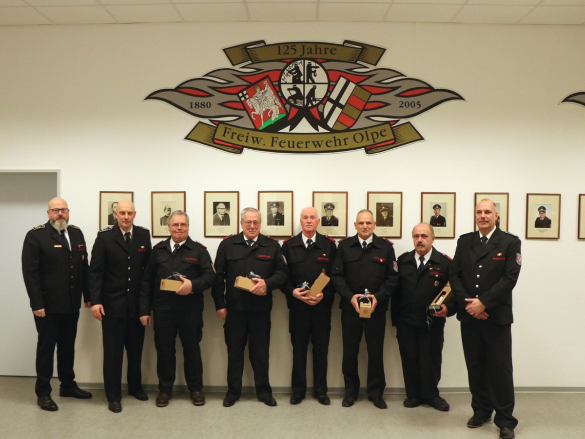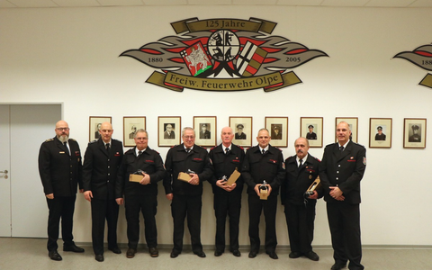 Außerdem kam es zur Übernahme von fünf Kameraden in die Ehrenabteilung. Alle haben sich über Jahrzehnte für die Feuerwehr eingesetzt. Im Zuge der Jahreshauptversammlung skizzierte der Leiter der Feuerwehr die Verläufe der Kameraden und würdigte somit ihre Verdienste für die Olper Bürgerinnen und Bürger.