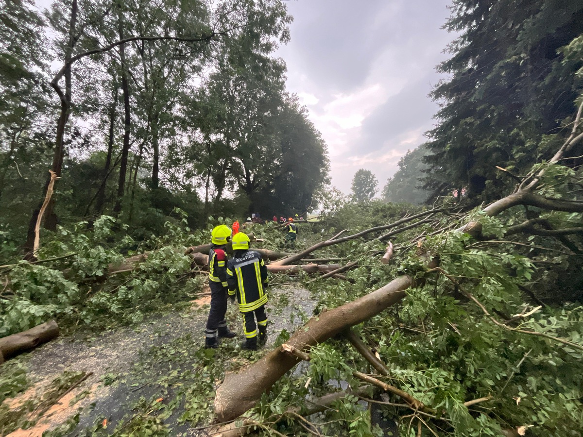Die Bevölkerung wird weiterhin um erhöhte Vorsicht gebeten, da noch zahlreiche abgebrochene Äste und Baumkronen in den Bäumen hängen und herabstürzen können.