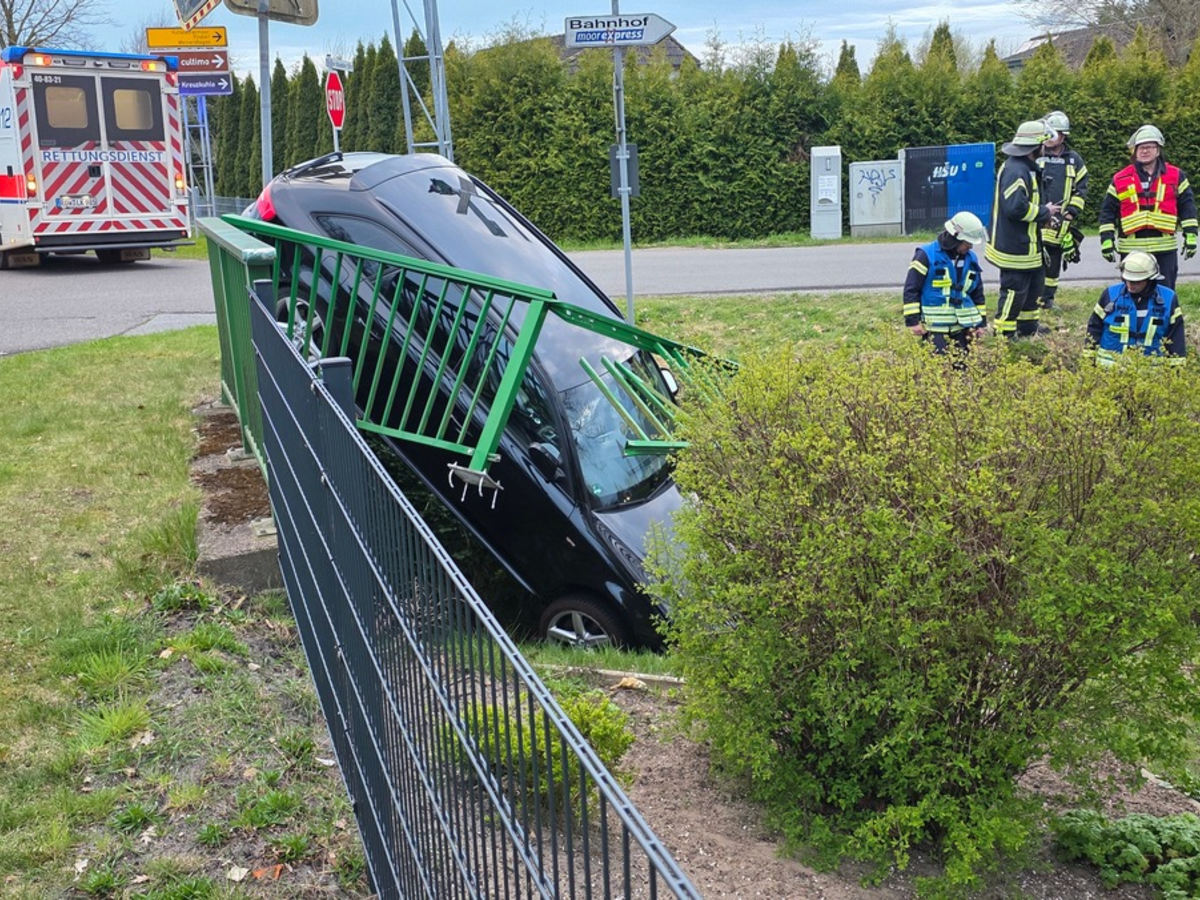 FW-ROW: PKW durchbricht Brückengeländer und landet im Kanal