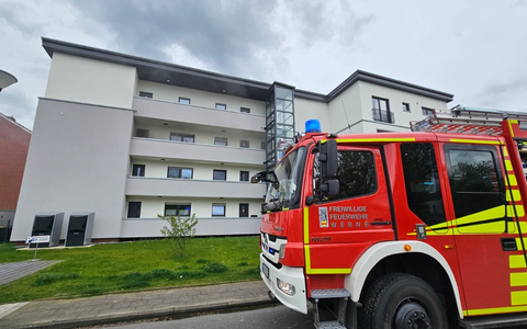 Am Dienstagnachmittag wurde um 16:29 Uhr per Meldeempfänger der Löschzug 1 Stadtmitte sowie der Löschzug 3 aus Stockum mit dem Stichwort "FEUER_3 - LZ1 - LZ3 - LdF - Vermutlich Wohnungsbrand / Flammen aus Terassentür" in die Freigrafenstraße nach Werne alarmiert. Ein Balkon einer Wohnung im zweiten Obergeschoss stand beim Eintreffen der ersten Kräfte im Vollbrand. Die Flammen schlugen im Zusammenhang mit starkem Brandrauch und Feuerschein vom Balkon und drohten auf das Wärmeverbundsystem der Hauswand über zu greifen. Fünf Personen angrenzender Wohnungen konnten sich selbstständig in Sicherheit bringen und warteten beim Eintreffen der ersten Rettungskräfte vorbildlich vor dem Gebäude. Durch die starke Rauchentwicklung wurde ein Rauchvorhang gesetzt um das Treppenhaus rauchfrei zu halten. Ein Trupp unter Atemschutz vom ersteintreffenden Hilfeleistungslöschfahrzeug ging sofort zur Brandbekämpfung durch die Wohnung zum Balkon vor. Die eingesetzte Drehleiterbesatzung positionierte parallel der ersten Maßnahmen das Fahrzeug vor dem Gebäude um bei einem möglichen Übergriff auf die Dachhaut sofort eingreifen zu können. Parallel der ersten Brandbekämpfung von Innen wurde mit einem C-Hohlstrahlrohr zusätzlich von außen ein Löschangriff vorgenommen um die Flammen einzudämmen. Weitere Atemschutztrupps der nachrückenden Kräfte aus Stockum durchsuchten die angrenzenden Wohnungen und Etagen nach Personen und evakuierten den Nahbereich um die betroffene Wohnung. Zwei Personen wurden durch den Notarzt und den Rettungsdienst aus Werne vor Ort untersucht und konnten ohne Verletzungen wieder entlassen werden. Nach circa 20 Minuten konnte der Brand unter Kontrolle gemeldet werden. Die Wohnung im Obergeschoss wurde durch den Brandrauch stark in Mitleidenschaft gezogen und war nicht mehr bewohnbar. Die Feuerwehr kontrollierte mit der Wärmebildkamera die betroffenen Bereiche am Balkon auf versteckte Brandnester. Es wurde mit Hochleistungslüftern eine Überdruckbelüftung der Wohnung vorgenommen. Um 17:45 Uhr konnte der Löschzug 1 Werne Stadtmitte sowie der LZ 3 aus Stockum die Einsatzstelle verlassen. Im Einsatz waren 35 freiwillige Einsatzkräfte der beiden Löschzüge Werne Stadtmitte und Stockum mit insgesamt zehn Fahrzeugen. Des Weiteren an diesem Einsatz beteiligt waren drei Rettungswagen aus Werne bzw. dem Kreisgebiet, ein Notarzt aus Werne und die Polizei Werne.
