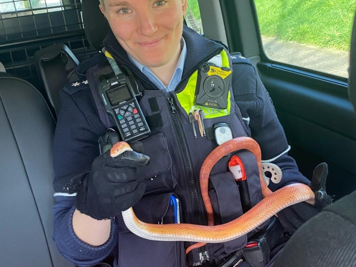 Laut Auskunft des Fachmanns handelt es sich um eine weibliche Albino-Kornnatter. Diese ist nicht giftig und ursprünglich in Florida beheimatet. Die Schlange war circa einen Meter lang.