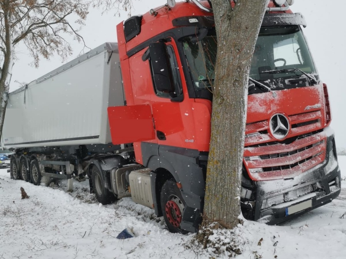 29.11.2023 - 15:33:58 | presseportal.deNach aktuellen Erkenntnissen befuhr der 58-jährige deutsche Fahrer mit seinem Gespann aus Mercedes-Benz Zugmaschine und Anhänger bei winterlichen Straßenverhältnissen die Landesstraße 27, als er aus bislang unbekannter Ursache nach rechts von der Fahrbahn abkam und mit einem Straßenbaum kollidierte. Der aus Güstrow stammende Fahrer wurde mit Unterstützung der alarmierten Freiwilligen Feuerwehr aus seiner Zugmaschine befreit und anschließend an den Rettungsdienst übergeben.