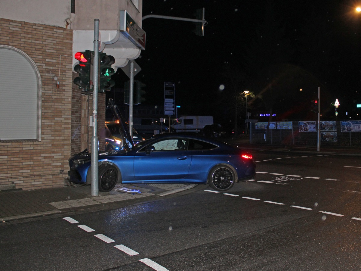 Der Mann war gemeinsam mit einem Beifahrer in seinem Mercedes-Benz CLE 220d um etwa 20.40 Uhr auf der Enneper Straße in Richtung Haspe unterwegs. Er beabsichtigte, nach links in die Nordstraße abzubiegen und verlor dabei die Kontrolle über seinen Wagen. Infolgedessen prallte er frontal gegen eine dortige Hausfassade eines Eckgebäudes, welches dadurch leicht beschädigt wurde. Ersten Erkenntnissen zufolge fuhr der 28-Jährige mit überhöhter Geschwindigkeit, wodurch sein Mercedes beim Abbiegen ausbrach und es zu der Kollision kam.