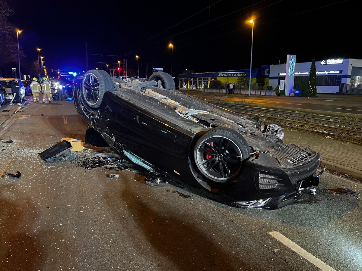 30.12.2023 - 23:36:32 | presseportal.deUm 20:20 Uhr wurde der Regionsleitstelle ein Verkehrsunfall auf der Schulenburger Landstraße in Höhe Friedenauer Straße gemeldet. Anhand der eingehenden Notrufe alarmierte die Feuerwehr drei Rettungswagen, einen Notarzt, Kräfte von Berufsfeuerwehr und der Ortsfeuerwehr Vinnhorst. Bei dem Unfall hat sich ein Mercedesfahrer (m. 29) mit seinem Auto überschlagen und blieb auf dem Dach liegen. Ein weiterer Nissan-PKW, besetzt mit drei Personen (m. 20, m. 30 und w. 29), wurde durch den Unfall stark beschädigt und blieb mittig auf der Straße stehen. Zwei am Fahrbahnrand abgestellte PKW wurden ebenfalls in Mitleidenschaft gezogen. Trotz massiver Zerstörungen an beiden beteiligten PKW wurden alle Fahrzeuginsassen nur leicht verletzt. Die 29-jährige Beifahrerin des Nissan wurde in ein Krankenhaus transportiert. Die übrigen Betroffenen lehnten einen Transport ab. Die Feuerwehr sicherte die Einsatzstelle ab und leuchtete sie aus. Der Brandschutz wurde sichergestellt und die Fahrzeugbatterien abgeklemmt. Für den Zeitraum der Unfallaufnahme und die Versorgung der Betroffenen wurde die Schulenburger Landstraße stadtauswärts gesperrt. Die Unfallursache sowie die Schadenhöhe sind unklar. 12 Fahrzeuge von Feuerwehr und Rettungsdienst waren mit rund 45 Einsatzkräften bis im 21:00 Uhr im Einsatz.