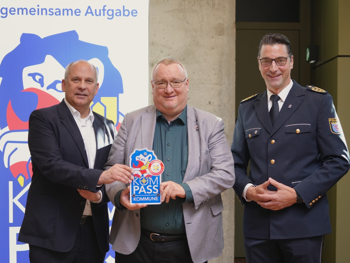 Wiesbaden/Hattersheim am Main. Heute überreichte Innenminister Roman Poseck dem Bürgermeister der Stadt Hattersheim, Klaus Schindling, das 44. KOMPASS-Sicherheitssiegel. Die Stadt wurde im Herbst 2018 in das bundesweit einzigartige Programm aufgenommen. Seitdem hat die Kommune gemeinsam mit der Polizei und den Bürgerinnen und Bürgern Problembereiche identifiziert und passgenaue Sicherheitsmaßnahmen entwickelt.