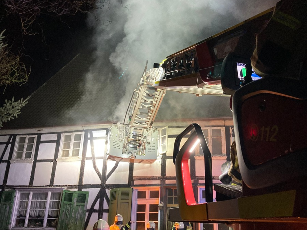 Bereits auf der Anfahrt zu dem landwirtschaftlichen Anwesen "In der Marpe" war eine starke Rauchentwicklung aus dem Gebäude erkennbar. Der Bewohner hatte sich um Glück eigenständig aus einem rückwärtigen Fenster im ersten Obergeschoss retten können. Weitere Personen waren nicht im Gebäude.