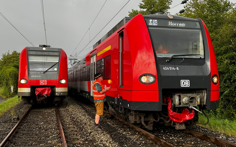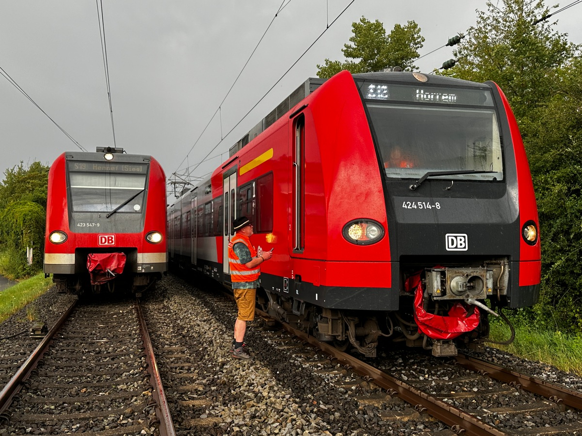Eine S-Bahn (S 19) war am 13.08.2024 unterwegs von Köln nach Hennef. Auf Höhe der Kolberger Straße kam es gegen 17:20 Uhr zum Stillstand der Bahn, da sich mehrere Äste in der Oberleitung verfangen hatten. Diese verhinderten die Weiterfahrt.