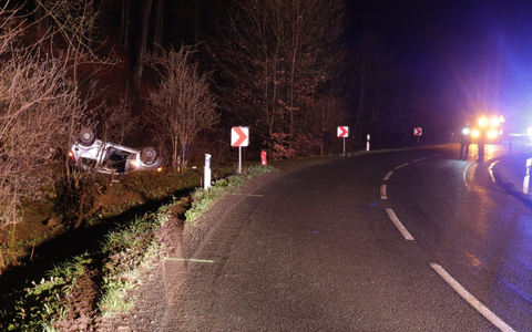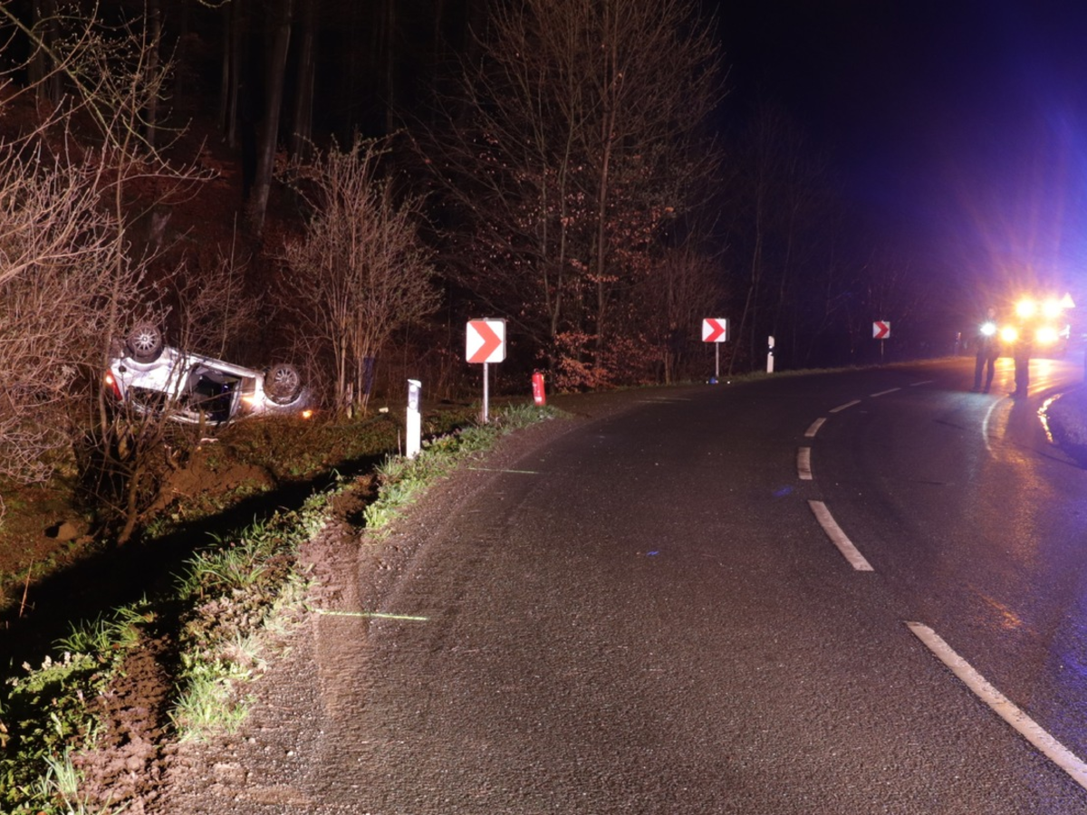 Höxter - Am Samstag, den 05.04. gegen 21:30 Uhr befuhr ein 18-jähriger aus Lauenförde mit seinem Ford Fiesta die L755 aus Richtung Vörden, in Richtung Höxter. Auf regennasser Fahrbahn kam er in einem kurvigen Streckenabschnitt vor Ovenhausen ins Schleudern und nach links von der Fahrbahn ab. Der Pkw überschlug sich und kam schließlich auf dem Dach liegend zum Stillstand. Der Pkw-Führer verletzte sich nur relativ leicht. Seine 20-jährige Beifahrerin aus Beverungen erlitt jedoch schwerste Verletzungen. Sie musste auf Grund der Schwere der Verletzungen mit einem Rettungshubschrauber in eine Bielefelder Klinik geflogen werden. Am Pkw entstand ein Totalschaden. Der Unfall wurde mit Unterstützung eines spezialisierten Unfallaufnahmeteams aufgenommen, so dass die Strecke bis 04:30 Uhr gesperrt bleiben musste. Die genaue Unfallursache wird noch ermittelt. (MS)