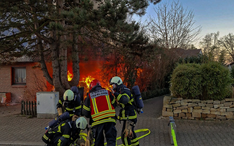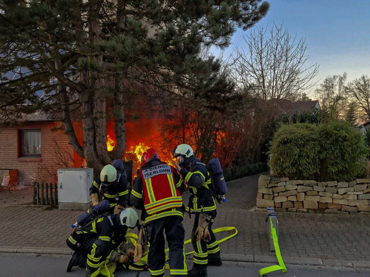 Aufgrund der hohen Brandintensität, die von dem PKW ausging, griffen die Flammen bereits vor dem Eintreffen der ersten Kräfte auf das Carport und anschließend auf die Fassade und den Dachstuhl des Wohnhauses über.