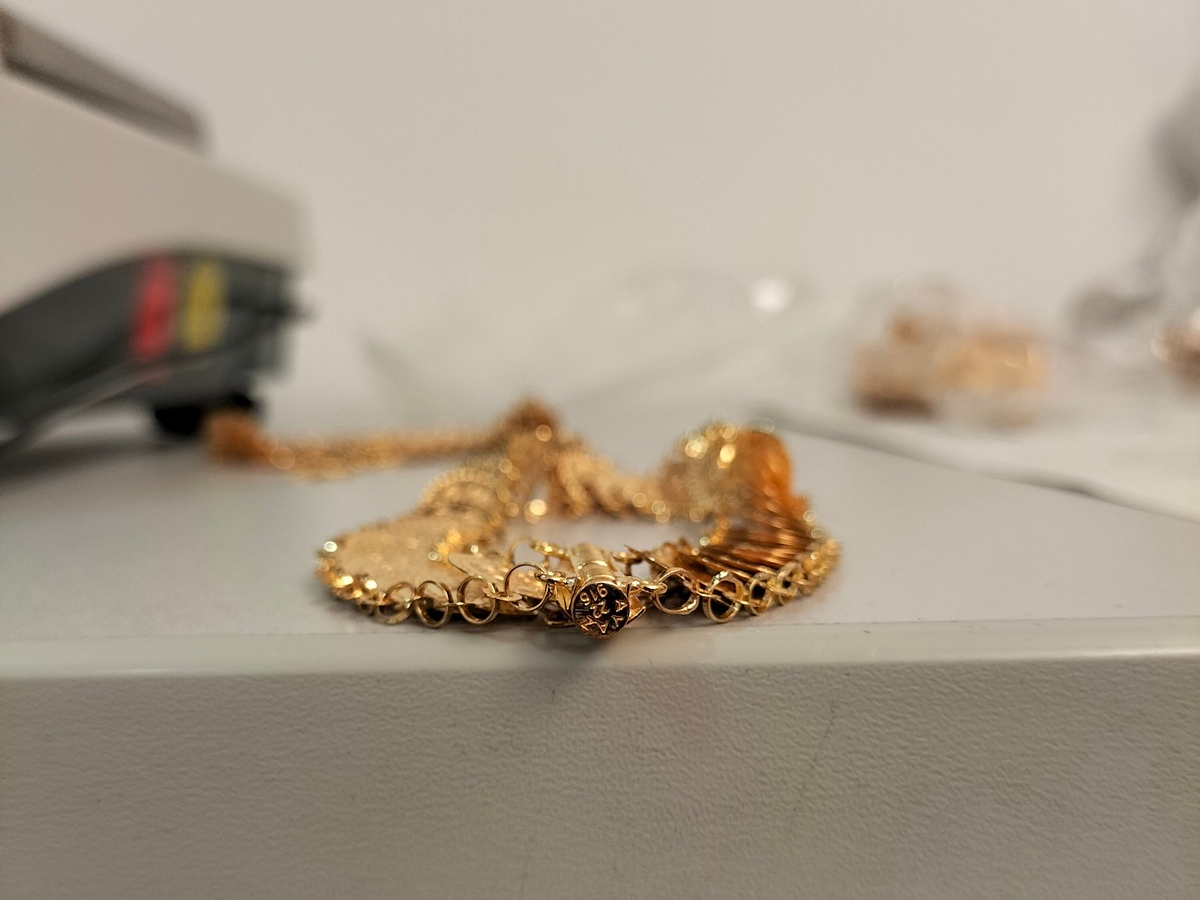 "Nach Öffnen des Koffers fanden die Zöllnerinnen und Zöllner diversen Goldschmuck in verschiedenen Verpackungen und beschrifteten Auftragstüten.", so Maurice Douce, Pressesprecher des Hauptzollamtes Itzehoe. "Bei der anschließenden Kontrolle des Handgepäcks stellten die Kollegen weiteren Goldschmuck fest. Das festgestellte Gold hatte ein Gewicht von insgesamt fast vier Kilogramm.", ergänzt Douce. Neben dem Schmuck stellte der Zoll in der Kontrolle zusätzlich noch Geschenkverpackungen und Poliertücher fest, welche zum Weiterverkauf bestimmt waren.