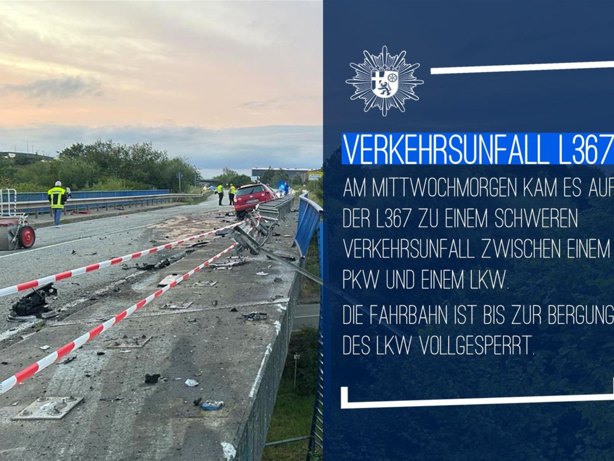 24.07.2024 - 12:32:50 | presseportal.deDen bisherigen Ermittlungen zufolge war ein Lkw-Fahrer auf seinem Weg in Fahrtrichtung Weilerbach kurz vor 5 Uhr aus noch ungeklärter Ursache im Bereich einer Brücke in den Gegenverkehr geraten und mit einem entgegenkommenden Pkw zusammengestoßen. Der Lkw durchbrach anschließend eine Schutzplanke sowie ein Geländer und fuhr eine mehrere Meter tiefe Böschung hinunter, wo er auf der Seite zum Liegen kam.