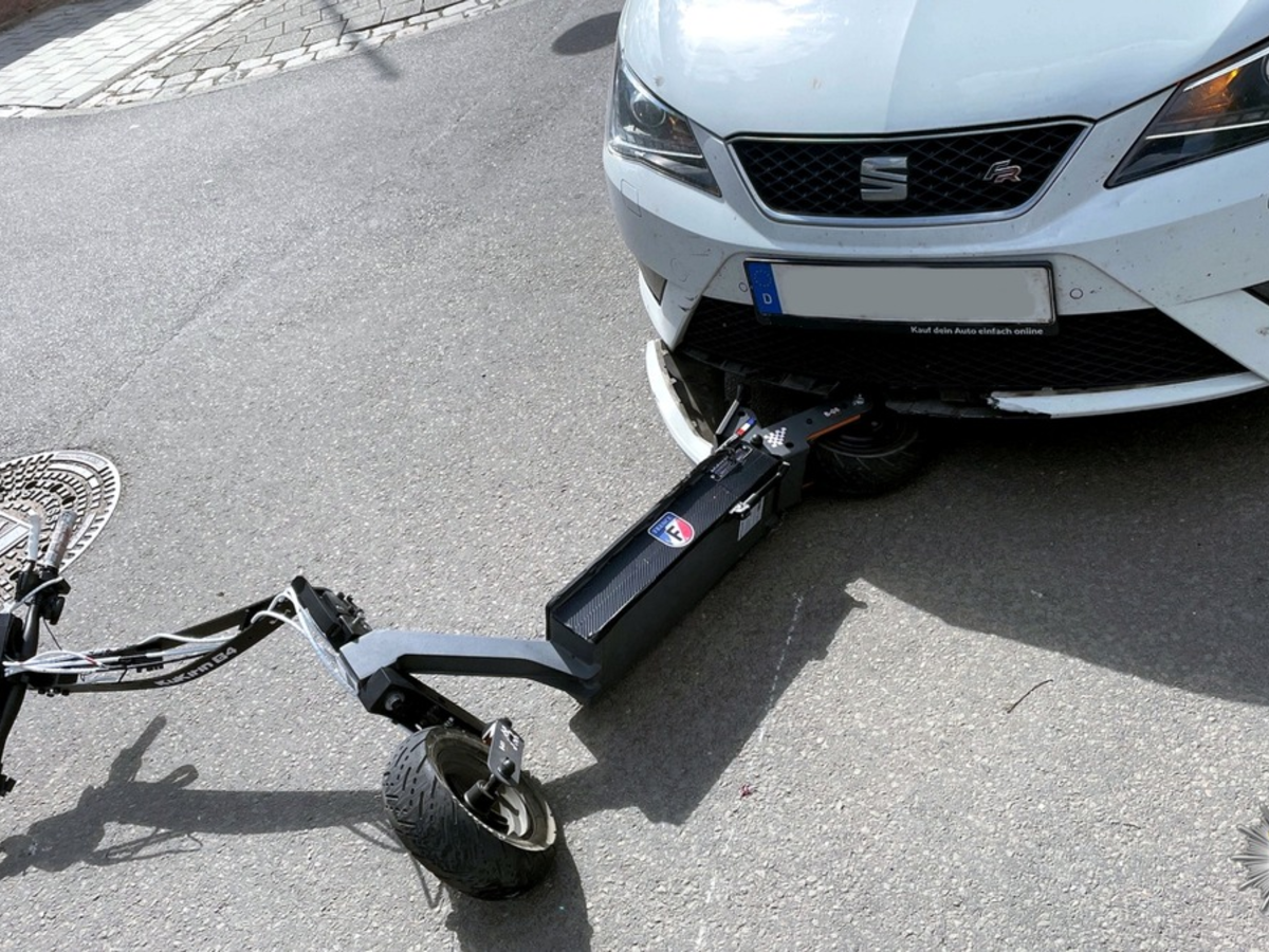 Es kam zum Zusammenstoß der beiden Fahrzeuge, wobei sich der Rollerfahrer leichte Verletzungen zuzog. Am E-Scooter wurde die Lenkerstange verbogen, am Auto wurde die Frontstoßstange beschädigt. Der Gesamtschaden wird auf etliche hundert Euro geschätzt. Weil es Hinweise gibt, dass der E-Scooter schneller fahren kann als er dürfte, wurde der Roller vorläufig sichergestellt und soll einer technischen Prüfung unterzogen werden. |cri