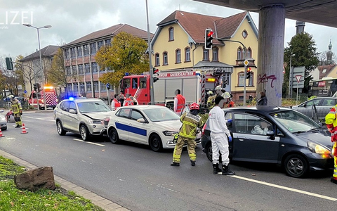 14.11.2023 - 16:06:49 | presseportal.deAlle drei waren in Richtung Lauterstraße unterwegs und fuhren auf der linken Spur. Kurz hinter der Einmündung zur Martin-Luther-Straße musste die 22-jährige Fahrerin im Honda Jazz verkehrsbedingt bremsen. Der 62-jährige Mann im nachfolgenden VW Polo erkannte die Situation und bremste ebenfalls. Die 49-jährige Frau im dahinter fahrenden BMW X3 brachte ihren Wagen allerdings nicht mehr rechtzeitig zum Stehen. Sie krachte auf das Heck des VW und schob diesen auf den davor stehenden Honda.