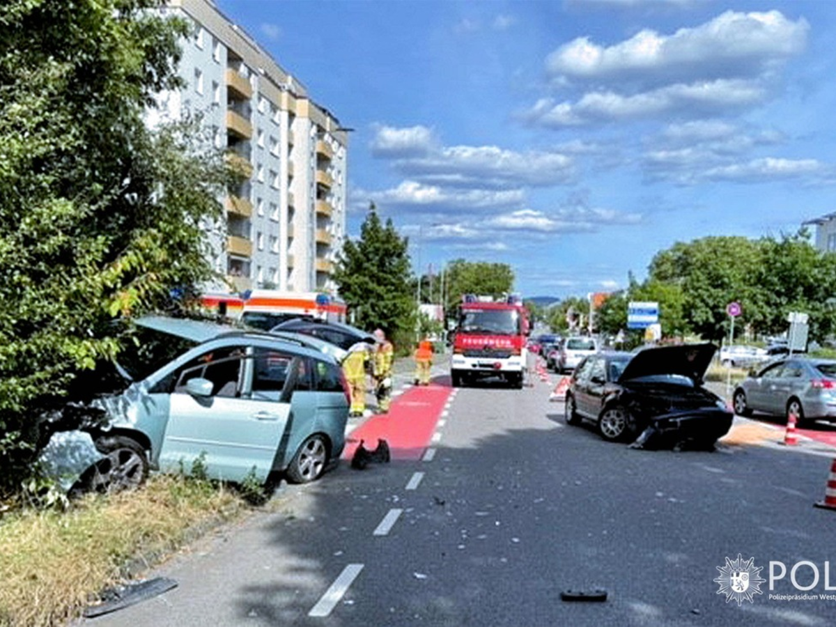 22.08.2024 - 14:08:27 | presseportal.deZu dem Unfall kam es, als eine 35-jährige Autofahrerin mit ihrem VW Golf aus der Vogelwoogstraße kam und die Reichswaldstraße geradeaus in Richtung Feuerbachstraße überqueren wollte. Dabei nahm sie jedoch einem Mazda-Fahrer die Vorfahrt, der in der Reichswaldstraße unterwegs war und in Richtung Merkurstraße fuhr.