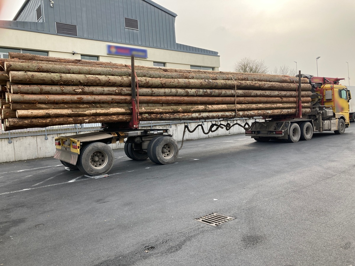 Polizei stoppt Langholzlaster bei Kirchheim mit 49 Prozent Überladung