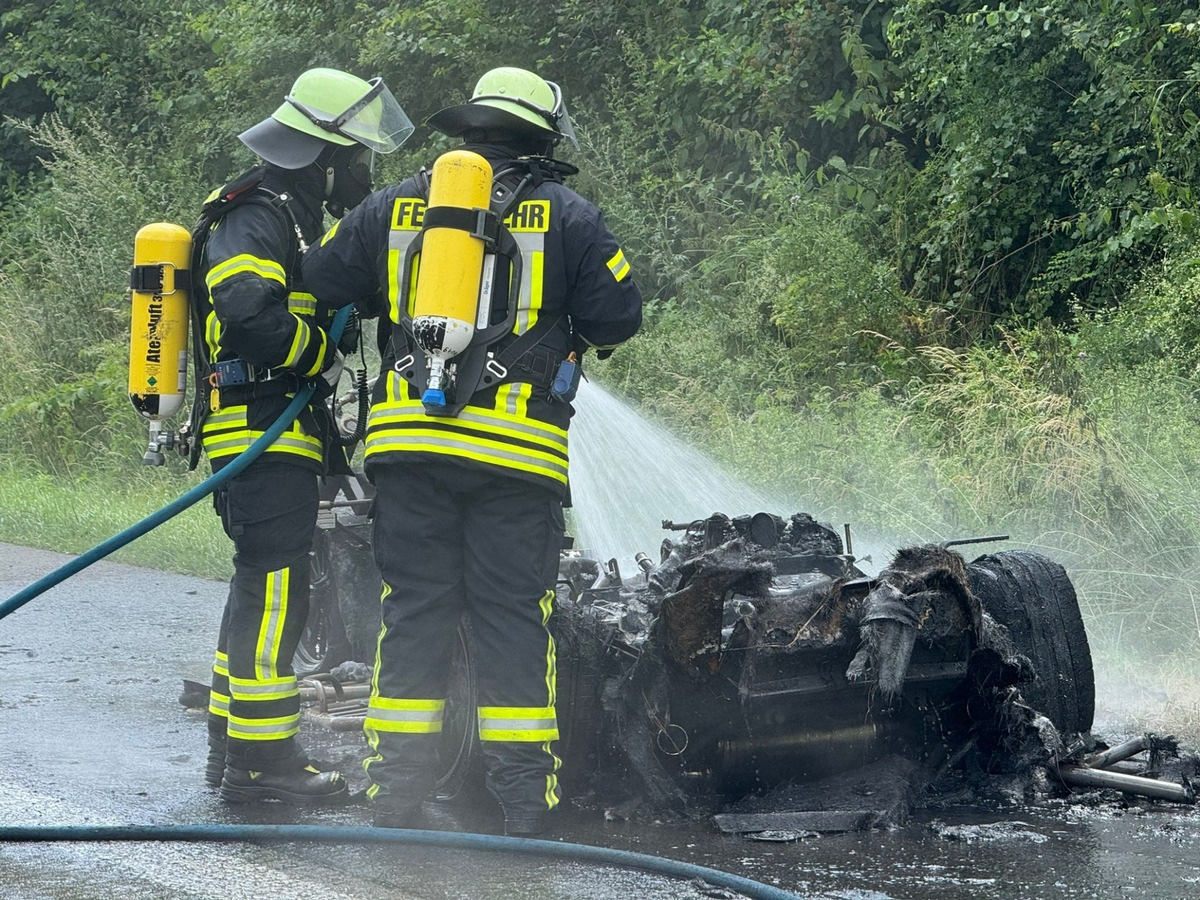 FW Königswinter: Trike auf Autobahn ausgebrannt