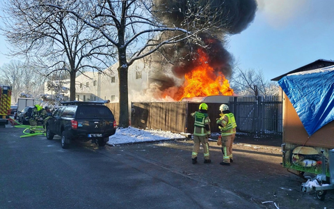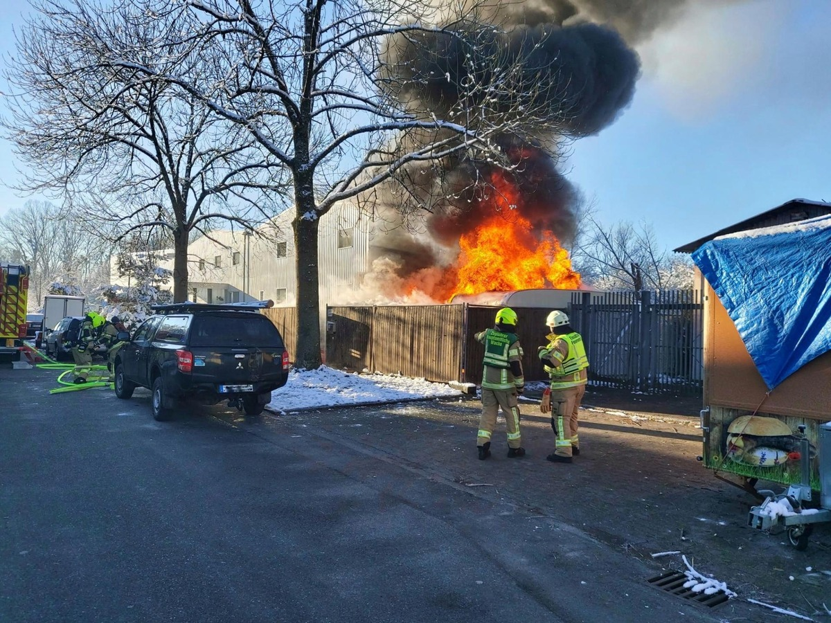 FW Konstanz: Wohnwagen brennen an Lagerhalle