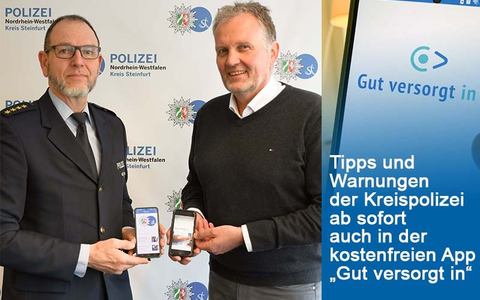 "Wir freuen uns, dass die Kreispolizei Steinfurt das Angebot von 'Gut versorgt in' ergÀnzt", sagt Cihan Bagci von der Entwicklerfirma der App in Herford. "In der Polizeirubrik finden die Nutzer hilfreiche Tipps und kompetente Ansprechpartner."