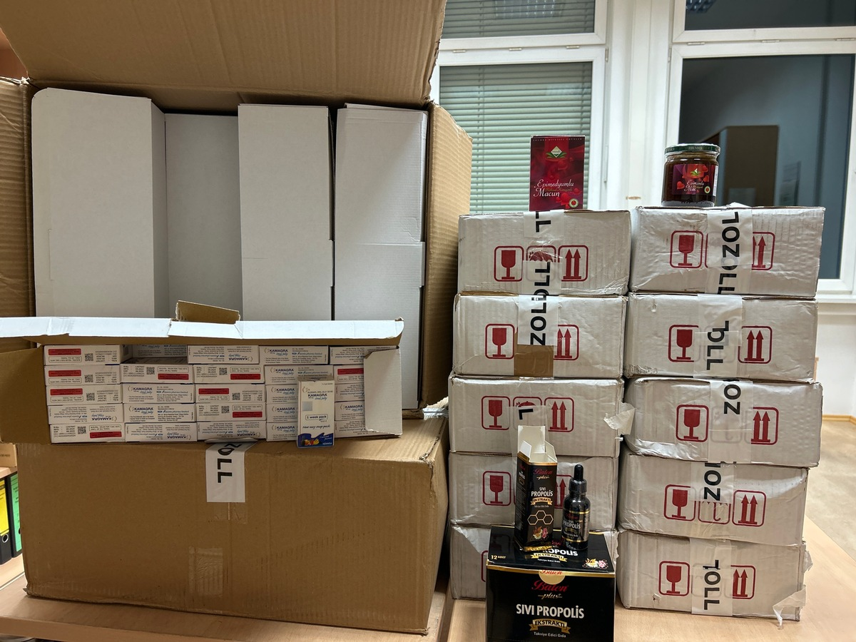 Bei der anschließenden Kontrolle des Fahrzeugs entdeckten Zollbeamte des Zollamts Suben in Zusammenarbeit mit der Kontrolleinheit Verkehrswege Passau eine große Menge nicht zugelassener Arzneimittel, die den Wirkstoff "Sildenafil" enthalten. Sichergestellt wurden 150 Gläser Potenzhonig "Epimedyumlu Macun", 5.600 Gelbeutel des Potenzmittels "Kamagra-Oral Jelly" sowie 12 Fläschchen "Sivi Propolis Balen Plus".