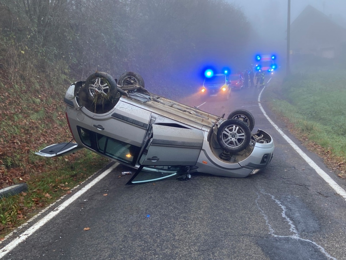 Langweiler (Kreis Kusel) - Die Spritztour einer dreiköpfigen Freundesgruppe endet am Samstagnachmittag mit leichten Blessuren. Ein 19-Jähriger fuhr mit seinem grauen Ford Fusion von Langweiler in Richtung Homberg. Vermutlich aufgrund von Unachtsamkeit und nicht angepasster Geschwindigkeit geriet er zunächst nach rechts in den Grünstreifen. Der junge Mann lenkte dagegen und steuerte mit seinem Fahrzeug in den gegenüberliegenden Graben. Dort geriet der Ford ins Schleudern und überschlug sich. Auf dem Dach liegend kam das Auto auf der Fahrbahn zum Stillstand. Die 14- und 17-jährigen weiteren Insassen sowie der Fahrer konnten sich selbstständig aus dem Fahrzeug befreien. Alle Beteiligten wurden bei dem Unfall leicht verletzt und kamen in die umliegenden Krankenhäuser. Am Fahrzeug entstand ein Totalschaden. Es wurde abgeschleppt.|pilek