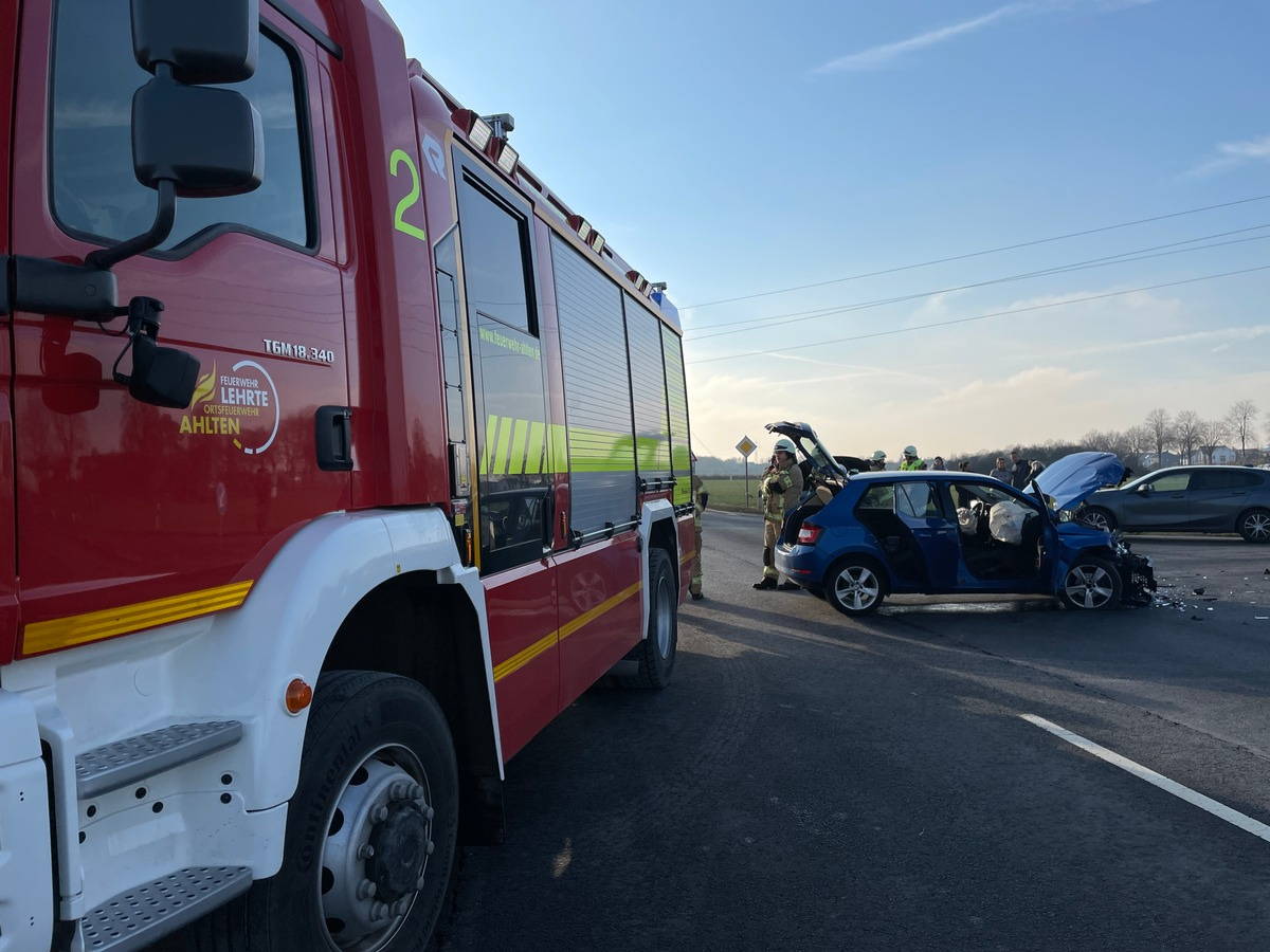 Am Sonntagnachmittag wurde dann um 14:32 die Ortsfeuerwehr Ahlten zu einem Verkehrsunfall in die Straße am Rehwinkel Ecke L385 alarmiert. Gemäß der Alarmmeldung sollten dort nach einem Verkehrsunfall zwischen zwei PKW, Betriebsstoffe auslaufen. Noch während sich die Kräfte auf der Anfahrt befanden, kam die Meldung, dass vermutlich noch eine Person in einem PKW eingeklemmt sei. Nach dem Eintreffen am Unfallort stellte sich die Situation wie folgt da, ein PKW-Fahrer hatte beim Linksabbiegen einen entgegenkommenden PKW übersehen und beide waren kollidiert, es war keine Person in den Fahrzeugen eingeklemmt, eine verletzte Person wurde bereits von dem Rettungsdienst behandelt und eine weitere verletzte Person befand sich noch in einem der Fahrzeuge. Die Einsatzkräfte stellten vor Ort den Brandschutz sicher, unterstützten die Polizei bei den Absperrmaßnahmen, führten an den verunfallten Fahrzeugen das Batteriemanagement durch, kümmerten sich um die ausgelaufenen Betriebsstoffe und betreuten die verletzte Person in dem PKW bis zum Eintreffen eines zweiten Rettungswagens. Beide verletzten Personen wurden durch den Rettungsdienst ins Krankenhaus transportiert. Während des gesamten Einsatzes war die L385 für den Verkehr in dem Kreuzungsbereich gesperrt. Die Feuerwehrleute halfen noch bei den Aufräumarbeiten, so dass die Straße im Anschluss für den Verkehr wieder freigegeben werden konnte. Im Einsatz war die Ortsfeuerwehr Ahlten mit 3 Fahrzeugen, der Rettungsdienst sowie die Polizei.