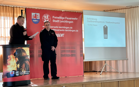 Der aktuell noch kommissarisch stellvertretende Wehrleiter Gunther Wagner wurde nun nach erfolgreich absolvierten Lehrgang "Leiter einer Feuerwehr" zum Stadtbrandinspektor befördert.