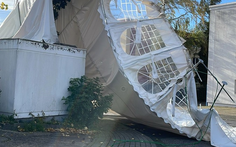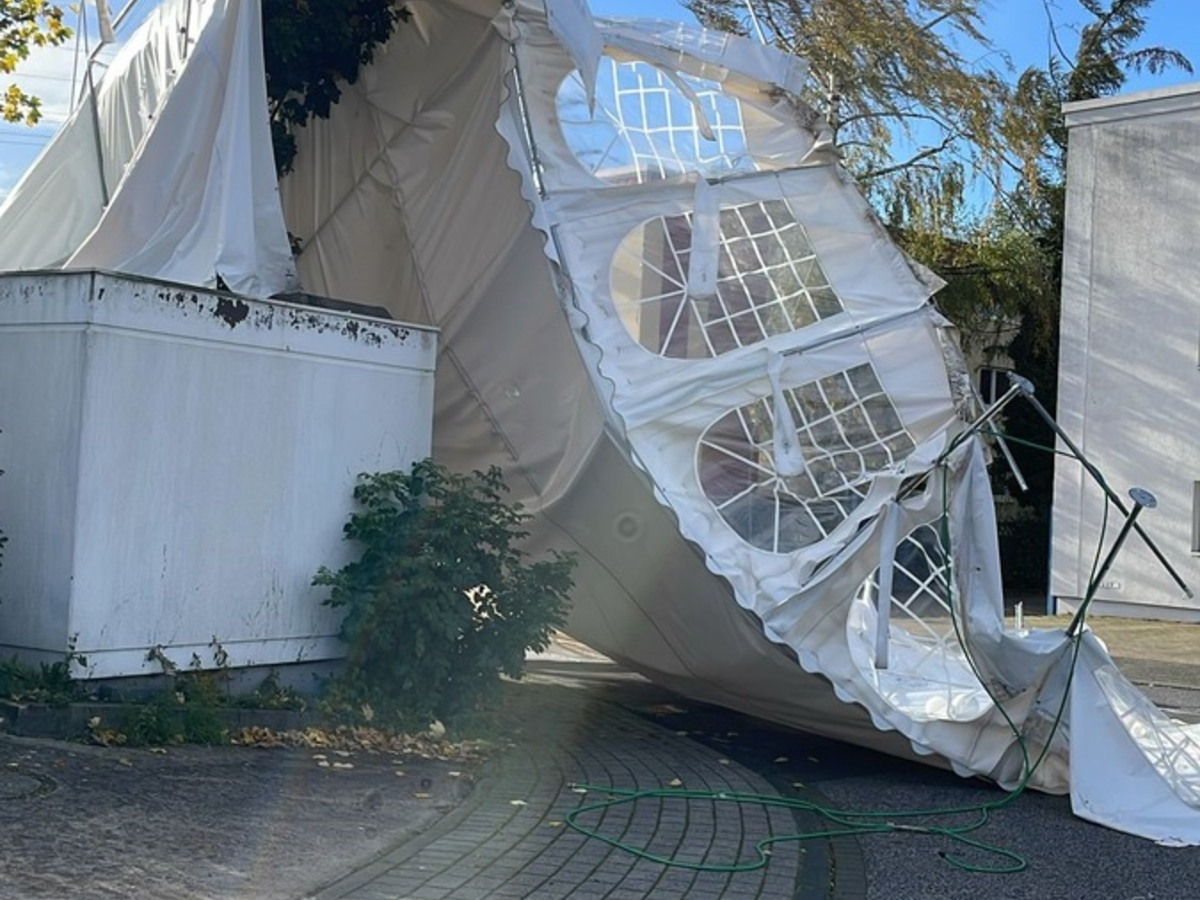 02.11.2023 - 16:24:41 | presseportal.deUm 06:32 Uhr erreichte die Leitstelle der Feuerwehr Leverkusen der erste sturmbedingte Notruf. Neben umgestürzten Bäumen, die Straßen blockierten oder abzubrechen drohten, wurden die Einsatzkräfte um 13:07 Uhr zu einer Einsatzstelle in Küppersteg gerufen. Ein Festzelt, das durch die starken Böen in die Luft gehoben wurde, landete in einem Baum und drohte erneut abzuheben. Um ein erneutes Abheben zu verhindern und die Sicherheit für die Umgebung zu gewährleisten, mussten die Einsatzkräfte das verbogene Gestänge des Festzeltes behutsam demontieren. Das Festzelt stand leer, sodass keine Personen verletzt wurden.