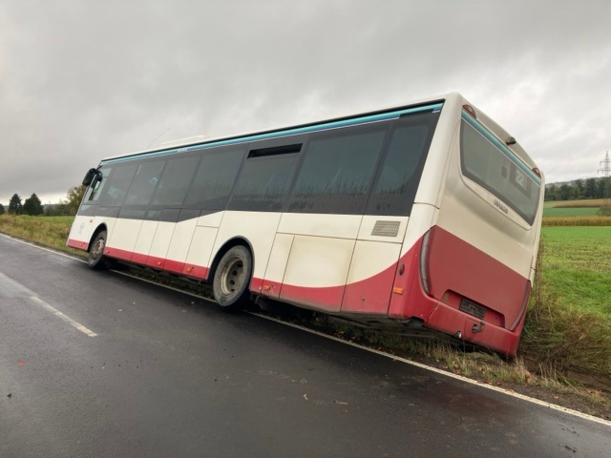 Linienbus in Graben gerutscht + Diebstahl aus Einfamilienhaus