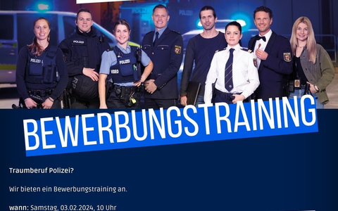 Ludwigshafen - Das Polizeipräsidium Rheinpfalz bietet in Kooperation mit der Berufsbildenden Schule Wirtschaft II Ludwigshafen am Samstag, dem 03.02.2024 wieder ein Bewerbungstraining für das Auswahlverfahren bei der Polizei an. Ab 10 Uhr können sich Interessenten über die beruflichen Perspektiven bei der Polizei informieren. Das Angebot richtet sich an Bewerberinnen und Bewerber für das Bachelor-Studium bei der Polizei und für die Höhere Berufsfachschule "Polizeidienst und Verwaltung", aber auch an junge Leute, die sich noch in der Berufsorientierung befinden. Das Bewerbungstraining beginnt mit einer kurzen Einführung, danach erhalten Interessenten einen Einblick in die verschiedenen Bestandteile von Eignungstests. Aus erster Hand werden an mehreren Stationen Hinweise zur Vorbereitung gegeben. Mit Übungsaufgaben und in kurzen Bewerbungsgesprächen kann der "Ernstfall" geprobt werden. Das Bewerbungstraining findet in der Berufsbildenden Schule Wirtschaft II Bismarckstraße 39 67059 Ludwigshafen statt und dauert bei Teilnahme an allen Testabschnitten bis ca. 15 Uhr.
