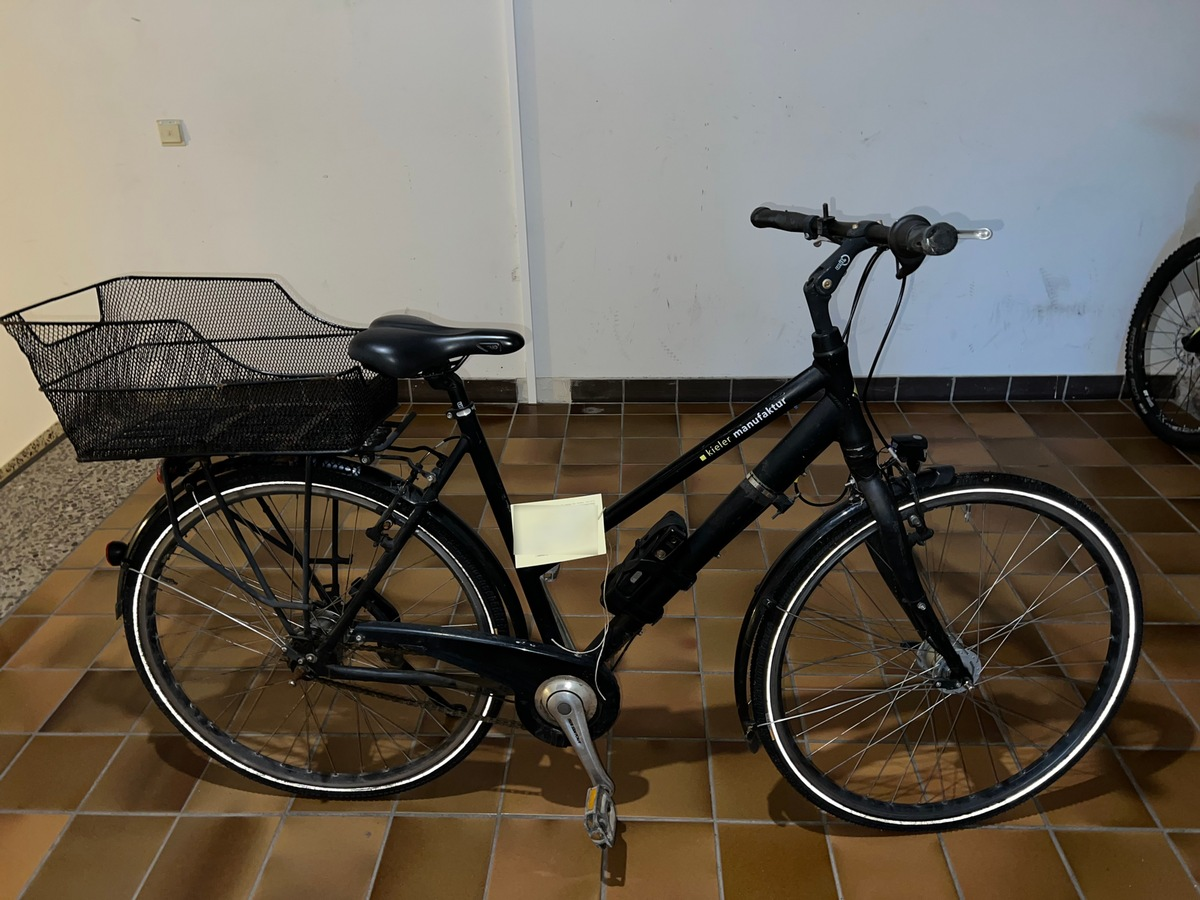 Bei dem von ihr mitgeführten Fahrrad handelt es sich um ein schwarzes Damenrad der Kieler Fahrradmanufaktur mit Trapezrahmen. Ausgestattet ist das Bike mit einem Faltschloss und einem länglichen, fest montierten Fahrradkorb. Nachfragen beim Hersteller sowie dem möglichen Fahrradhändler und auch Recherchen über die Rahmennummer brachten keine neuen Erkenntnisse.