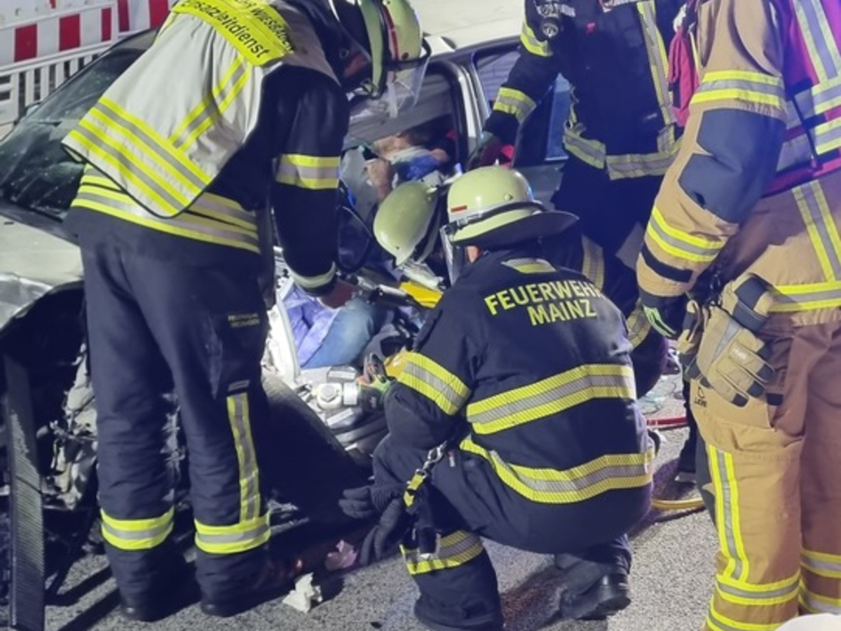 FW Mainz: Nächtlicher Alleinunfall auf der A643 - Eingeklemmte Person
