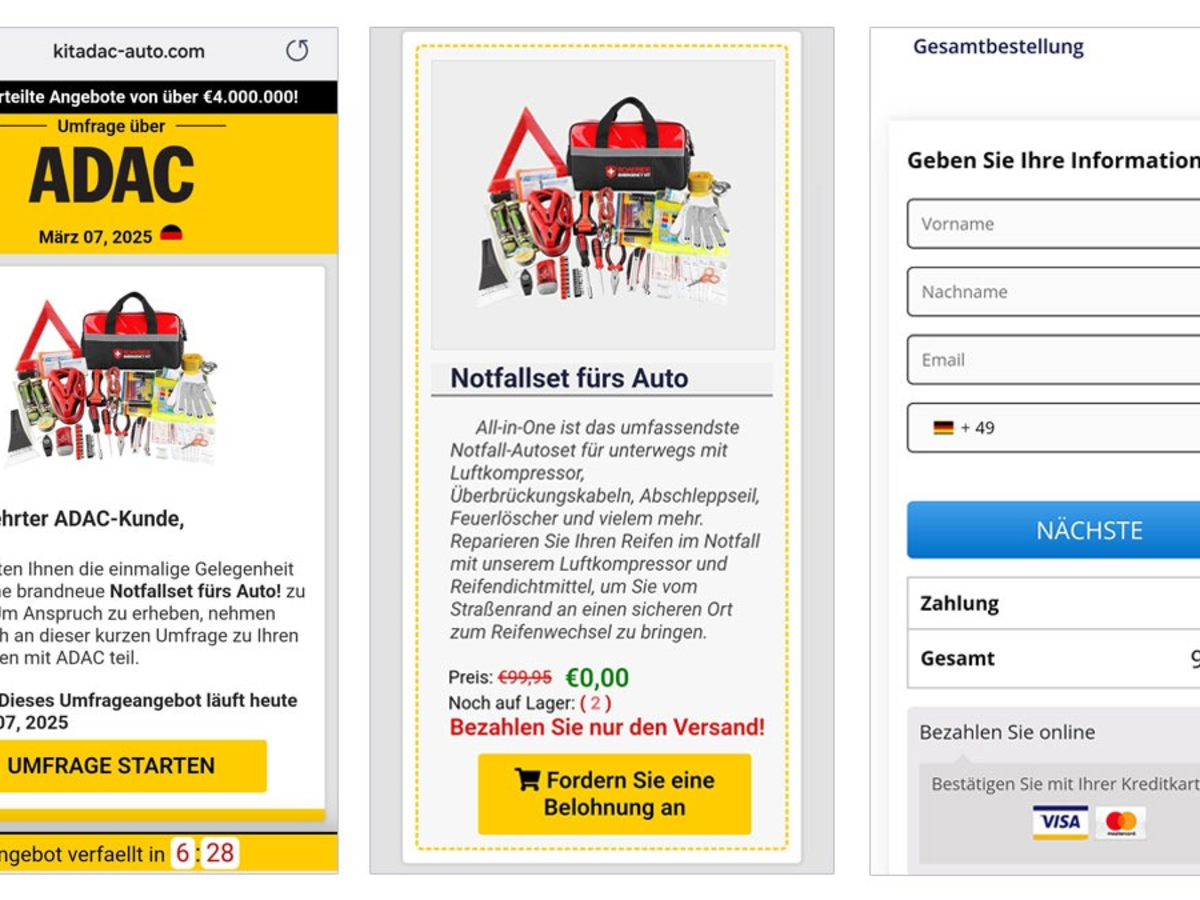 Ein Notfallset für das Auto als Dankeschön für die Teilnahme an einer Umfrage - lediglich die Versandkosten müsse man zahlen. Das ist eine aktuelle Masche, mit der versucht wird, Verbraucher via QR-Code zu ködern. Wer auf den Link klickt, landet auf einer Website, die vorgibt, als wäre sie der ADAC.