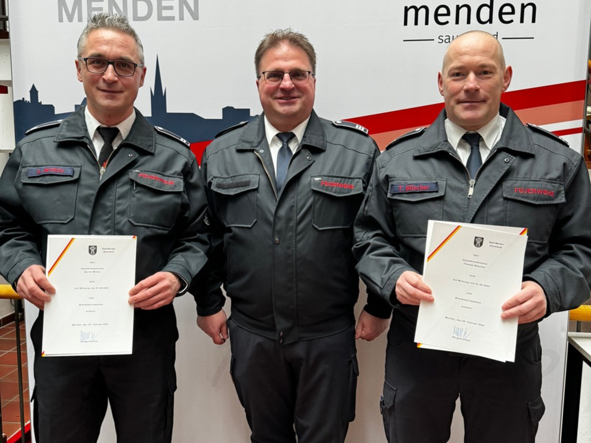 FW Menden: Beförderungen nach erfolgreicher Laufbahnprüfung