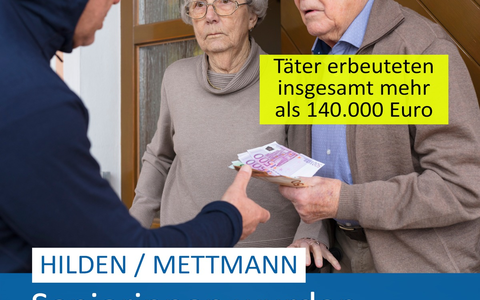 Einen ebenfalls erheblichen Vermögensschaden erlitt eine 81-jährige Hildenerin am Freitag (12. Juli 2024): Hier hatte gegen 10 Uhr ein Mann angerufen und sich als Mitarbeiter der Staatsanwaltschaft ausgegeben. Der Anrufer schilderte der Seniorin, ihr Sohn habe einen Verkehrsunfall verursacht, bei dem eine junge Mutter ums Leben gekommen sei. Nun müsse die 81-Jährige eine Kaution zahlen, sodass ihr Sohn nicht in Untersuchungshaft müsse. Auch hier wurde die 81-Jährige am Telefon gezielt unter Druck gesetzt - mit dem Ergebnis, dass sie insgesamt 40.000 Euro an ihrer Haustür an einen Abholer übergab.