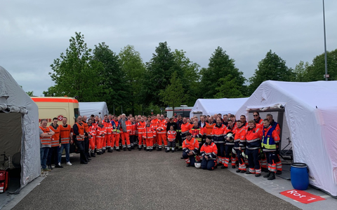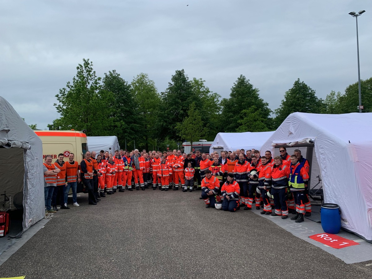 05.05.2024 - 15:46:32 | presseportal.deSchwerpunkt war der Aufbau der Behandlungsbereiche Rot (vital bedroht), Gelb (schwer verletzt/erkrankt) und Grün (leicht verletzt/erkrankt) sowie der Eingangssichtungs- und Ausgangsbereich für den Abtransport der Verletzten.