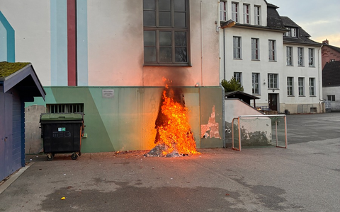 Mülheim an der Ruhr - Am heutigen Nachmittag gegen 15:35 Uhr wurde die Leitstelle der Feuerwehr zu einem Brandereignis an einer Schule am Klostermarkt alarmiert. Nach dem Meldebild brannte eine Mülltonne auf dem Schulhof unmittelbar am Gebäude. Beim Eintreffen der Einsatzkräfte bestätigte sich die Lage: Eine Mülltonne an der Gebäudefassade stand in Vollbrand, die Flammen hatten bereits auf die Fassade übergegriffen. Der Brand konnte zügig durch einen Trupp unter Atemschutz mit einem C-Rohr unter Kontrolle gebracht werden. Durch die Hitzeeinwirkung wurde ein Kellerfenster zerstört, sodass sich die Einsatzkräfte Zugang zum Gebäude verschaffen mussten. Das Gebäude wurde anschließend kontrolliert und belüftet. Nach Abschluss der Maßnahmen wurde die Einsatzstelle an die Polizei übergeben. (TMe)