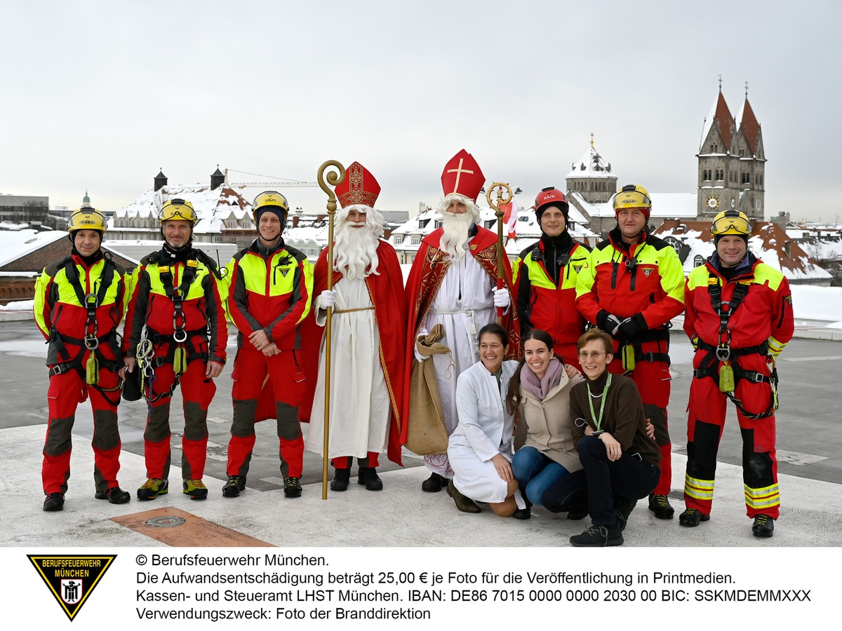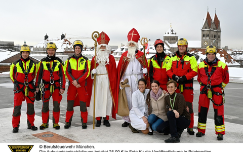Pünktlich um 15 Uhr schwebten zwei Nikoläuse vom Dach des Deutschen Herzzentrums München (DHM) herab. Ein Nikolaus begab sich direkt durch ein Fenster auf die Kinderintensivstation im dritten Obergeschoß und der zweite Nikolaus landete vor dem Haupteingang des Krankenhauses, wo er bereits von einer Kinderschar erwartet wurde. Dort verschenkte er an die Kinder noch eine Kleinigkeit.