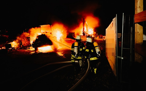 Während der Löscharbeiten wurde die Straße komplett gesperrt. Der Sachschaden liegt im hohen sechsstelligen Bereich. Zur Brandursache ermittelt die Polizei.