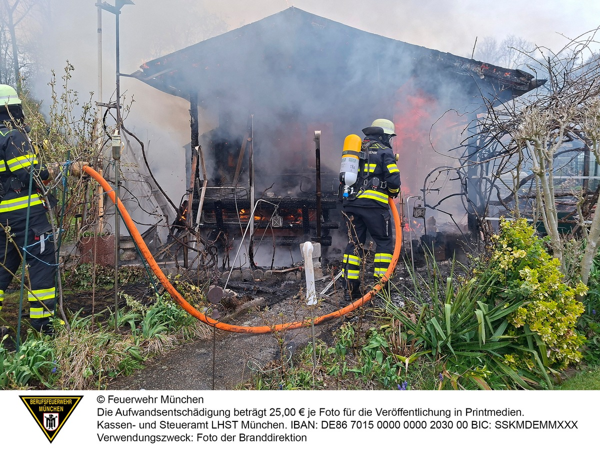 In einer Kleingartenanlage in Ramersdorf-Perlach ist am Freitagvormittag eine Gartenhütte vollständig ausgebrannt.