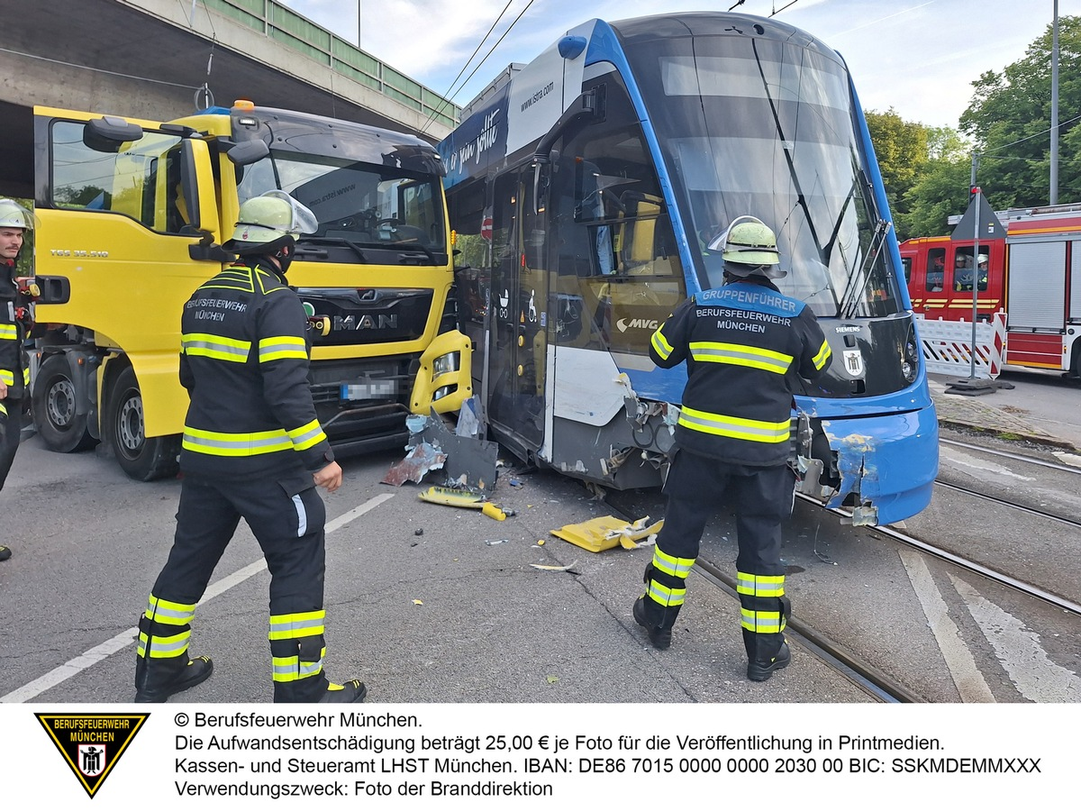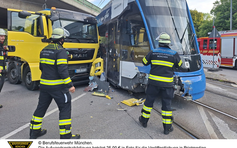 Im Kreuzungsbereich der Dachauer Straße und der Landshuter Allee kam es am Mittwochmorgen zu einem Zusammenstoß eines Lkw und einer voll besetzten Straßenbahn. Dabei krachte der Lastkraftwagen in die Front der Tram. Über den Notruf der Verkehrsbetriebe erreichte die Leitstelle die Meldung über den Unfall.